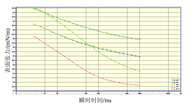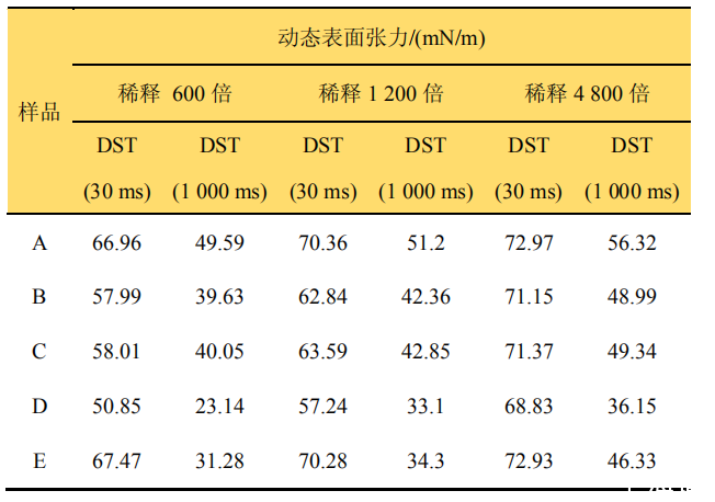 硝磺草酮懸浮劑制劑不同稀釋倍數(shù)的動態(tài)表面張力測定結(jié)果