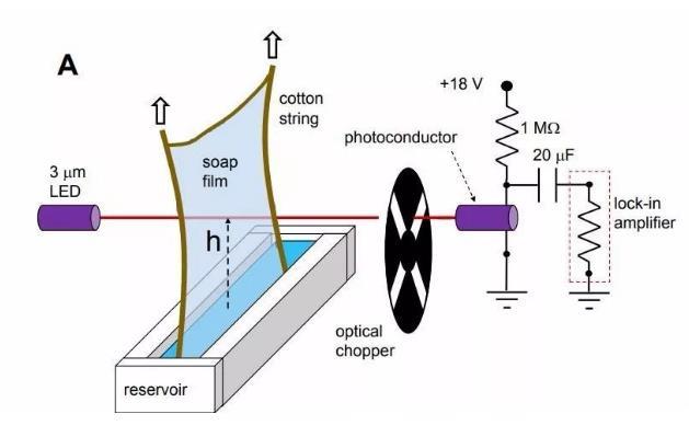 他們通過照亮肥皂泡來測量膜的厚度,還測量了肥皂泡配方中使用不同聚合物的分子量,