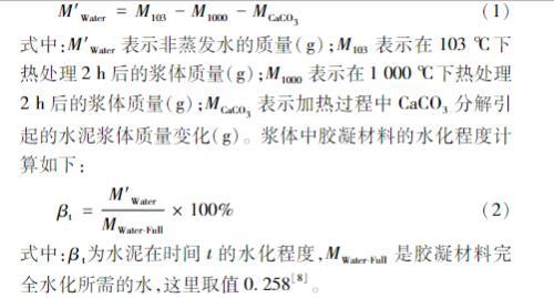 采用TAMAir八通道微量熱儀測試水泥凈漿96h內的水化熱。用非蒸發水燒失量測試值來估算水泥的水化程度。