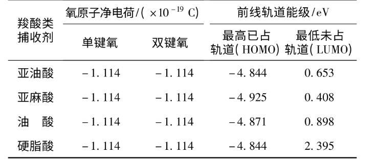 表2不同飽和度的羧酸的氧原子凈電荷及軌道能級