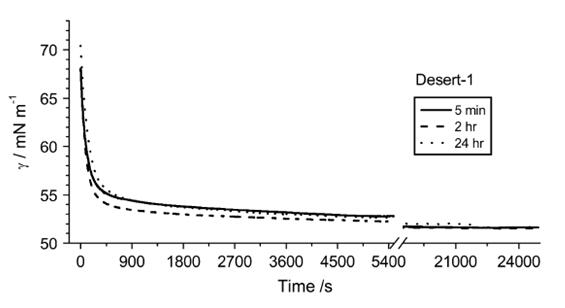 應(yīng)用EZ-PIplus表面張力儀">表面張力儀測(cè)試不同時(shí)間浸潤(rùn)土壤后得到的土壤浸潤(rùn)液的動(dòng)態(tài)表面張力。