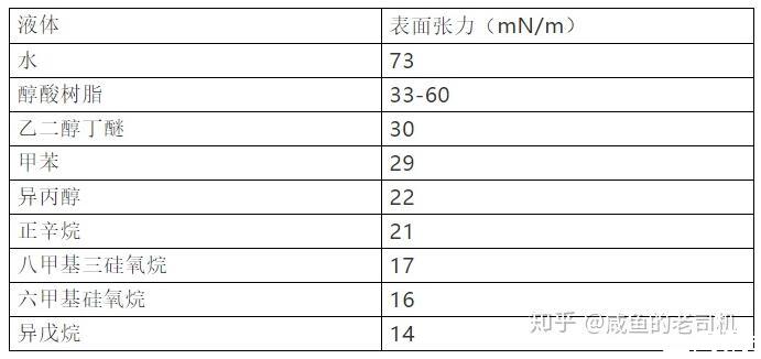 常見液體物質(zhì)的表面張力