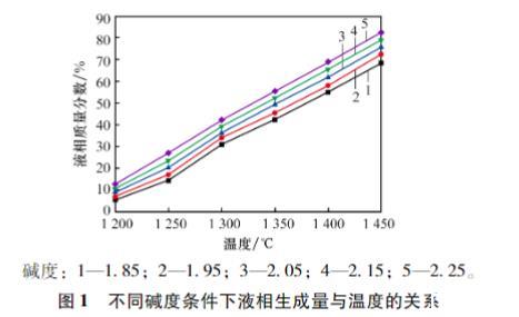 圖1不同堿度條件下液相生成量與溫度的關系