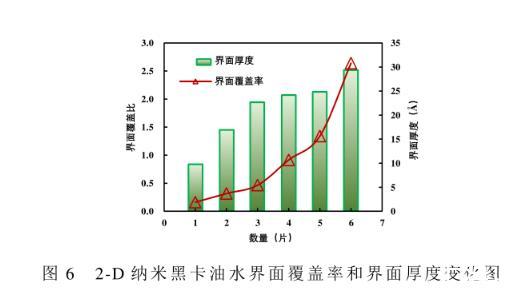 圖6 2-D納米黑卡油水界面覆蓋率和界面厚度變化圖