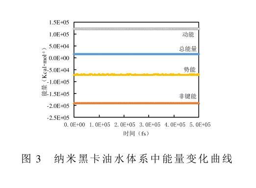 圖3納米黑卡油水體系中能量變化曲線