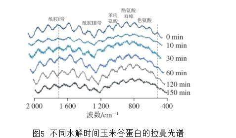 圖5不同水解時間玉米谷蛋白的拉曼光譜