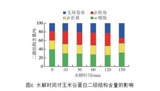 圖6水解時間對玉米谷蛋白二級結構含量的影響