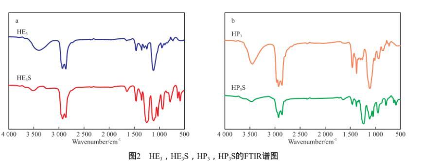 可見,產物的1H NMR譜圖分析結果與HE3S和HP3S的理論分子式結構相吻合,表明成功得到了目標產物。