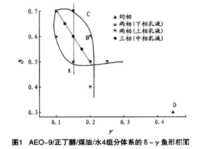 采用魚(yú)形相圖對(duì)微乳液相行為進(jìn)行描述,具有直觀明了、簡(jiǎn)單實(shí)用等特點(diǎn)。