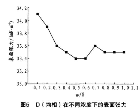 D(均相)在不同濃度下的表面張力見(jiàn)圖5。