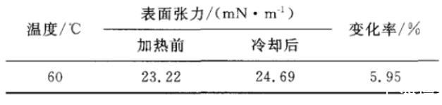 將助排劑AO-4放入烘箱,溫度設(shè)置為60℃,放置2 h后,冷卻至室溫,測(cè)試其表面張力,結(jié)果見(jiàn)表2。