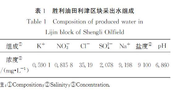實驗試劑:葡萄糖、檸檬酸鈉、酵母粉、KH2PO4、(NH4)2SO4、MgSO4·7H2O、乙酸乙酯為分析純,購自國藥集團化學(xué)試劑有限公司;正己烷為優(yōu)級純,購自Merck公司;二氯甲烷為優(yōu)級純,購自B&J公司;正構(gòu)烷烴混合標(biāo)準(zhǔn):C8—C40包含異構(gòu)烷烴姥鮫烷和植烷,購自Accustandard公司;層析硅膠(100~200目)及硅膠層析板購自青島海洋化工廠;原油采集自中國石化勝利油田有限公司利津區(qū)塊;降解實驗用水根據(jù)勝利油田利津區(qū)塊采出水組成配置(見表1),采出水中pH、鹽度用多參數(shù)儀(Manta3.0,Eureka,美國)測定,K+、NO-3、Cl-、SO2-4、Na+等離子依據(jù)SY/T5523—2016《油田水分析方法》中給出的檢測方法檢測。