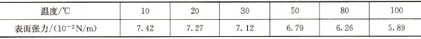 式中,Tc為液體物質(zhì)的臨界溫度,n為經(jīng)驗(yàn)常數(shù),有機(jī)液體n的平均值為1.21。當(dāng)溫度為Te時(shí),表面張力趨于零。表1-2為水在不同溫度下的表面張力。