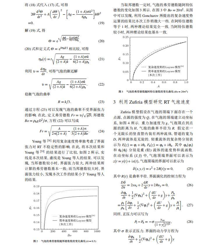 本文分別利用Sohn提出的簡單速度勢的Layzer模型和Zufiria模型研究界面張力對RT不穩(wěn)定性增長的影響,并對不同模型進(jìn)行比較。