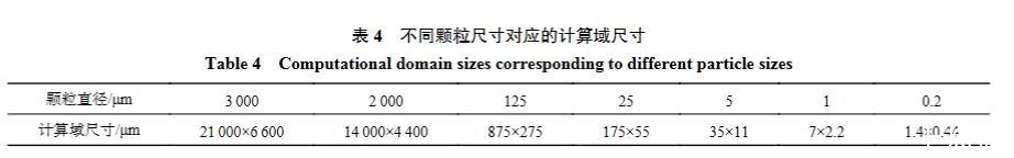 表4不同顆粒尺寸對應的計算域尺寸
