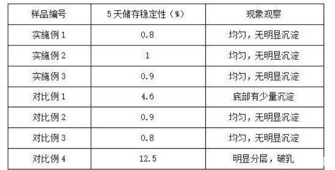 對(duì)比例1和實(shí)施例1的區(qū)別在于:將陽離子表面活性劑替換為維生素E,其它和實(shí)施例1保持一致。