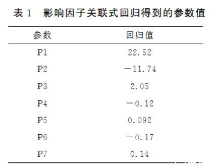 表1 影響因子關聯式回歸得到的參數值
