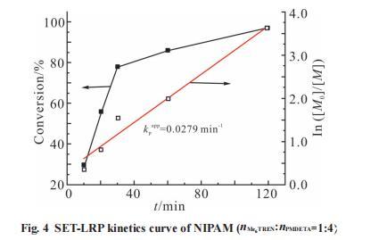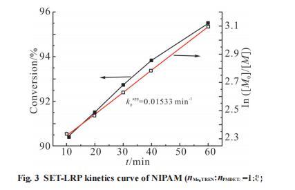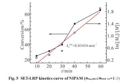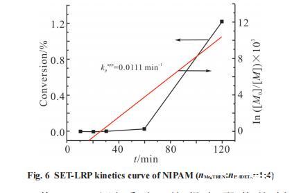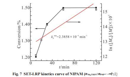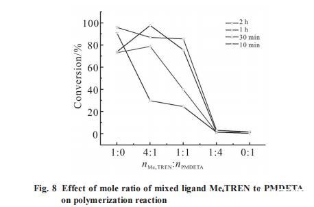 從Fig.7可以看出,這組與配體比例當nMe TREN:nPMDETA 6 =1:4類似,轉化率極低,實驗現象也相同,說明在Me。TREN占比低于PMDETA時,混合配體的催化效率會明顯下降甚至不能催化聚合。