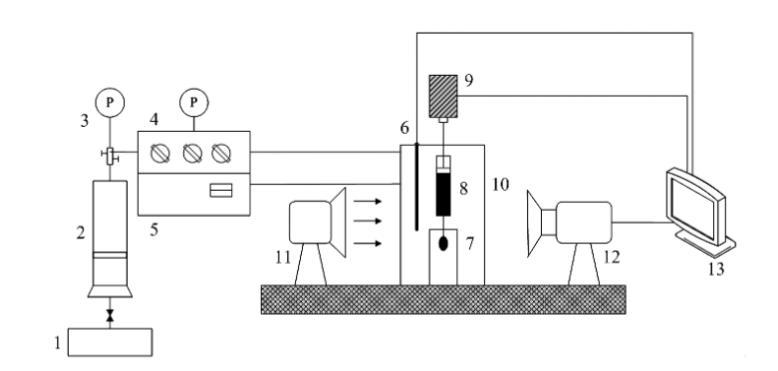 9-馬達(dá)驅(qū)動動力系統(tǒng);10-高溫高壓容器;11光源;12-攝像機(jī);13-計算機(jī)數(shù)據(jù)采集分析系統(tǒng)