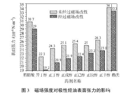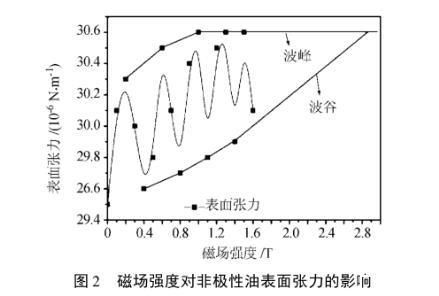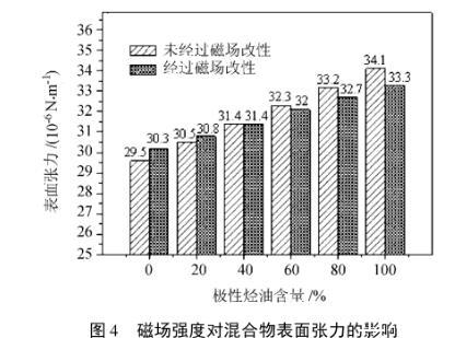 2)經(jīng)過磁場改性后,極性烴油的表面張力會降低。