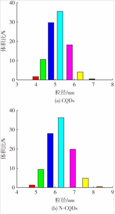 圖3 CQDs和N-CQDs的粒徑分布
