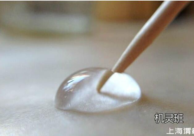 引申實(shí)驗(yàn),在水滴上放置1滴油,把它們混合在一起后,再用干凈的牙簽戳混合后的液滴,看看此時(shí)會(huì)發(fā)生什么現(xiàn)象。然后用蘸有洗潔精的牙簽戳混合后的液滴,看看又會(huì)出現(xiàn)什么現(xiàn)象。