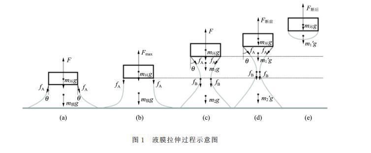 此時的液膜m1′將停留在吊環上,如圖1(e)所示。所以拉斷后,吊環所受拉力為吊環重力與殘留液膜重力之和。