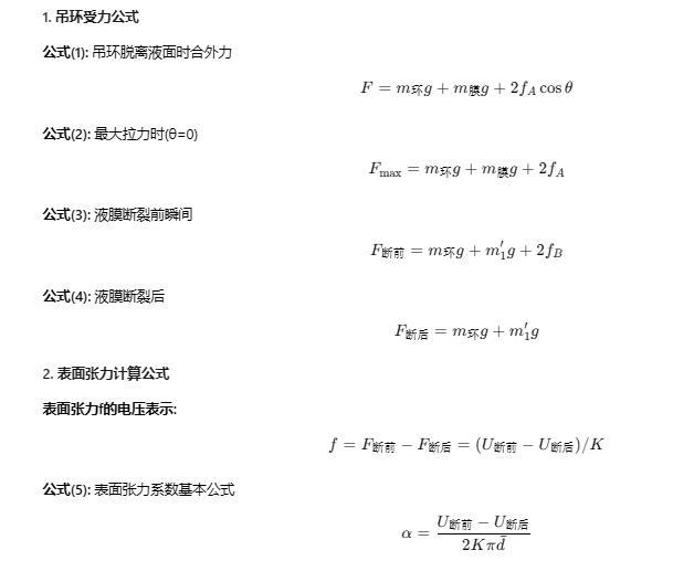 K為力敏傳感器靈敏度,通過定標來確定。吊環的內、外周長之和為π(d1 + d2),d1和d2為吊環的內、外直徑。用d? = (d1 + d2)/2表示其平均直徑,所以表面張力系數可表示為