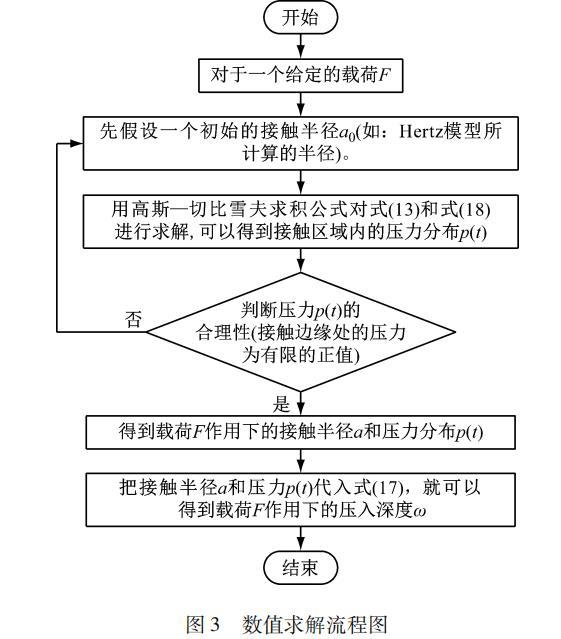 由于式(18)為奇異積分,難以獲得它的解析解,故本文采用高斯-切比雪夫求積公式對單個微凸體模型進行數值求解,詳細的求解步驟如下,圖3給出了數值求解流程步驟為: