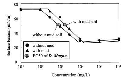 圖13泥質(zhì)土壤存在對大型水蚤AS表面張力曲線和有毒表面張力值的影響。