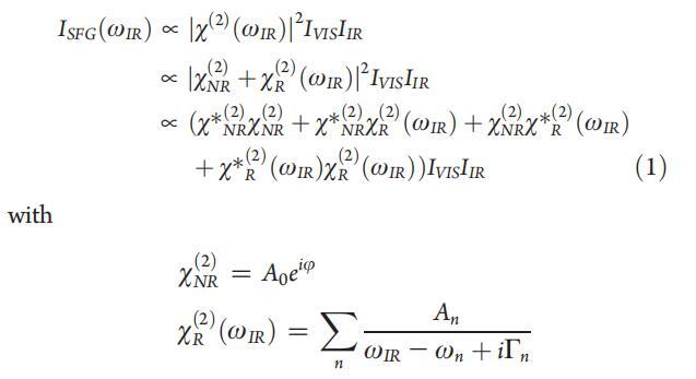 磁化率包含一個(gè)非共振項(xiàng),振幅為A0,相位相對(duì)于共振項(xiàng)j,以及一個(gè)共振項(xiàng)。后者通過共振頻率ωn、線寬2Γn和振幅An來(lái)描述n個(gè)振動(dòng)共振。