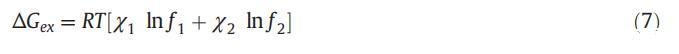 活度系數以及膠束摩爾分數也可用于使用式(7)[56]計算混合的過量自由能(ΔGex):