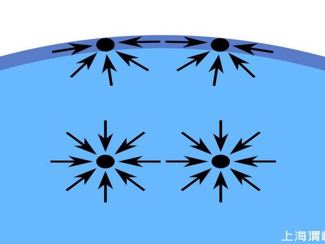 那么,對于任何一個表面,處在物質(zhì)表面層(也稱“表面相”)的分子,與內(nèi)部分子在受力情況、能量狀態(tài)和所處的環(huán)境等方面均不相同。我們以純液體表面為例進行分析。