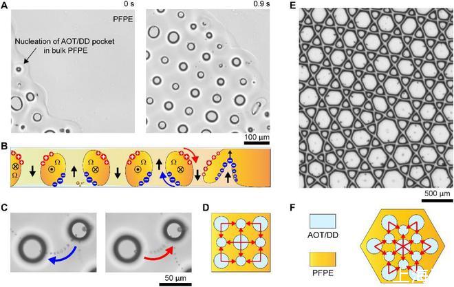 而基于此項研究的另一項潛在的成果,是能夠構(gòu)造相互作用的滾動細絲和微液滴。這對微生物基于各不相同的機制推進的動力學(xué)特性和集群行為也能進行指導(dǎo)研究。