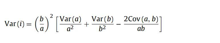 其中,Var(a)和Var(b)由標準誤差(SE)的平方獲得,例如Var(a)=SE(a)2。使用SPSS軟件計算a和b的SE。Cov(a,b)通過使用,