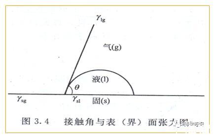 該式稱為Young方程或潤濕方程。θ越小,潤濕過程越易進(jìn)行。習(xí)慣上,θ>90℃,為不潤濕,θ<90℃,為潤濕。