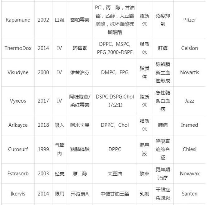 脂質納米粒在藥物遞送中最大的應用是癌癥治療,因為脂質納米粒包載抗腫瘤藥物的生物利用度和選擇性優(yōu)于游離藥物。基于脂質的納米載體可降低抗癌藥物對正常組織的毒性,增加疏水性藥物的水溶性,延長藥物停留時間,并改善對藥物釋放的控制效率。脂質納米粒還通過增強組織滲透性和滯留(EPR)效應提高癌癥治療的效率。腫瘤中快速但有缺陷的血管生成導致血管間隙較大(粒徑>100 nm),脂質納米粒可以很容易地通過這些間隙進入腫瘤。因此,腫瘤血管對脂質納米粒的滲透性要高得多,從而在靜脈內給藥時允許其選擇性地蓄積于腫瘤中。此外,腫瘤中功能失調的淋巴引流降低脂質納米粒從腫瘤內外排的速度,從而延長在腫瘤內的保留時間。