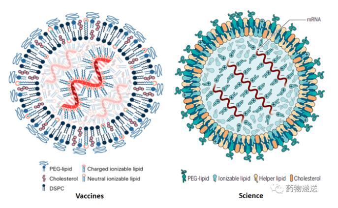 圖2 Vaccines和Science期刊的mRNA-LNP結構示意圖
