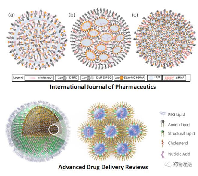 關于mRNA-LNP的結構示意圖,在認識上存在一定的差異,不同的期刊有不同的結構示意圖,甚至同一期刊還有不同的結構示意圖。