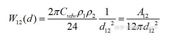 同樣,若取l為兩相界面處分子間的距離d12,且兩半無限體為兩種不同的物質時,則互作用勢變為