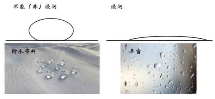 浸潤(rùn)現(xiàn)象,這個(gè)詞可能大家比較陌生,但是對(duì)應(yīng)的物理現(xiàn)象非常常見。比如下圖所示的防水衣服以及公交車車窗上的水滴就是非浸潤(rùn)和浸潤(rùn)代表性的場(chǎng)景。