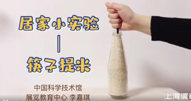 將筷子插入一個裝滿大米的瓶子中,發(fā)現(xiàn)一根筷子就能提起整瓶大米,這是由于筷子與米之間以及米與米之間的摩擦力很大造成的。