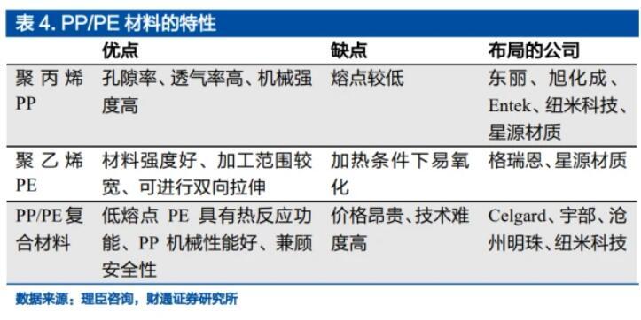 鈉電池的電解液和隔膜均具備成熟的量產(chǎn)技術(shù)。電解液在電池中起傳導(dǎo)離子的作用,其中主要由溶劑、電解質(zhì)和其他添加劑組成。鋰電池的電解質(zhì)為六氟磷酸鋰,而鈉電池的電解質(zhì)為六氟磷酸鈉。隔膜主要起分隔電池正負(fù)極,防止兩極接觸而短路的作用,并且隔膜還需要支持電解質(zhì)離子通過,鈉電池和鋰電池均使用PP或者PE隔膜。