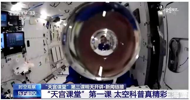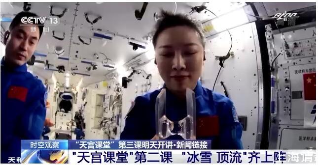 在約45分鐘的授課中,航天員演示了微重力環境下太空“冰雪”實驗、液橋演示實驗、水油分離實驗、太空拋物實驗,講解了實驗現象背后的科學原理,還展示了部分空間科學設施。