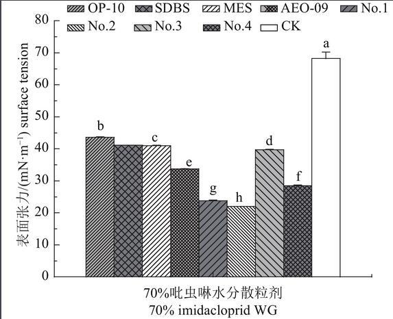 70%吡蟲啉WG(Imidacloprid 700 WG)為青島瀚生生物科技股份有限公司產品。農藥助劑見表1。