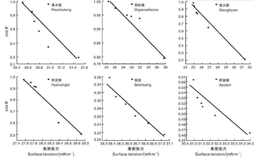 圖1吡蟲啉藥液表面張力與接觸角的關系