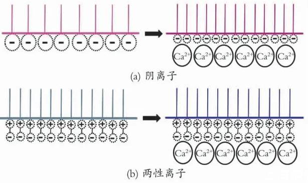 圖1 Ca2+對(duì)不同類型表面活性劑界面排布的影響
