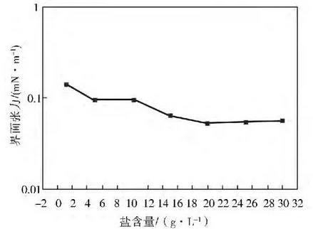 不同含鹽量對表面活性劑界面張力的影響