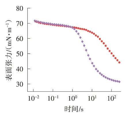 在實際應用中,時間快慢起著關鍵性作用。比如,在泡沫的生成過程中,表面張力的降低會使液膜更容易形成,同時也會使液膜不容易收縮和破壞,得到的泡沫就比較穩定。如果溶液的表面張力下降緩慢,相比之下,液膜擴展和破裂的速度快,表面活性劑不能發揮本身的作用。因此,對于非平衡情況下溶液表面性質的研究很有意義。