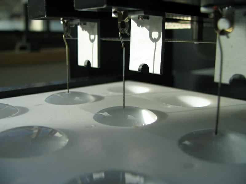 為了給用戶提供最為精確的表面張力/表面壓力,Kibron發展了一種新的精度超過0.2微克的微量天平,這種靈敏度與“最大拉力”原理相結合進行測量。測量時先將一個探針浸入到界面,然后慢慢拔出,記錄彎液面(粘附在探針上的液面)的重量,該重量用于計算表面張力。